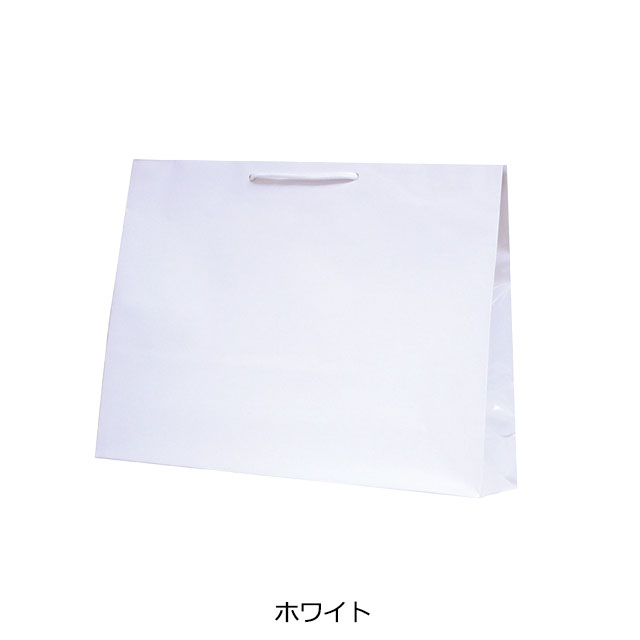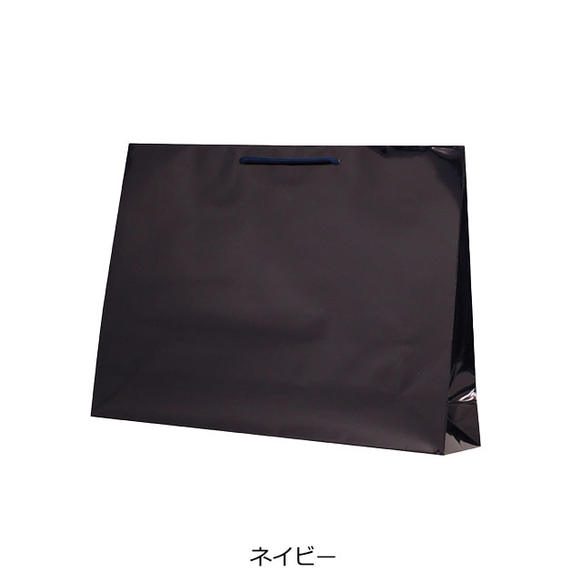表面グロスPP貼りで光沢があり、高級感のある紙袋です。A3対応サイズで、アパレル商品やポスター、資料なども余裕をもって収納可能。底ボール付きのため、型崩れしにくく、安定感と強度を兼ね備えています。