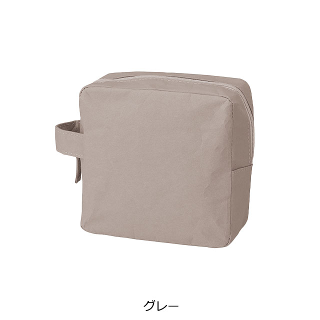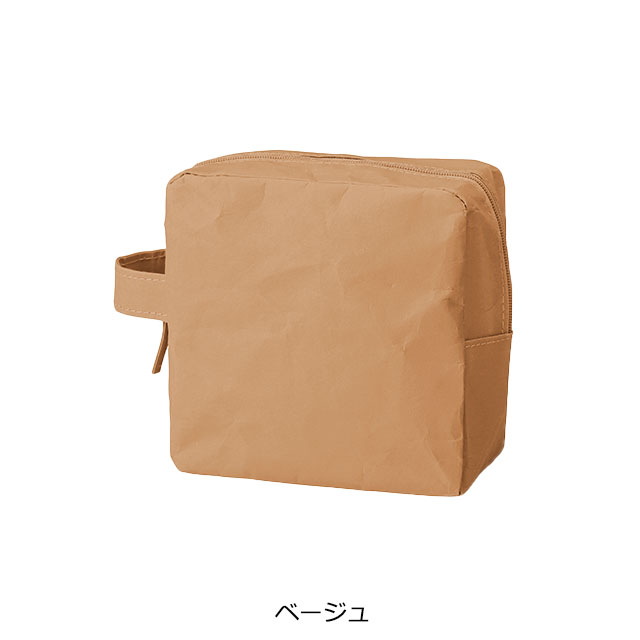 植物由来の環境にやさしいウォッシャブルペーパーを使用したスクエア型ポーチです。紙のような素朴でナチュラルな質感ながら、水洗いができる耐水性と、軽さ・丈夫さを兼ね備えたエコ素材が最大の魅力。