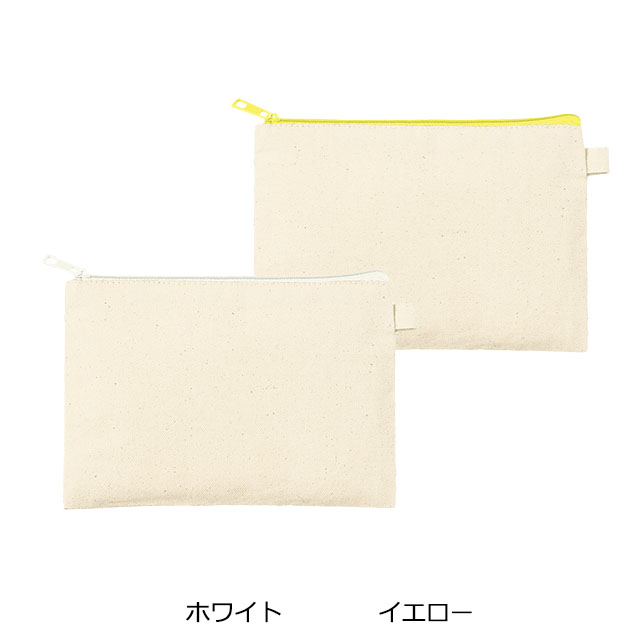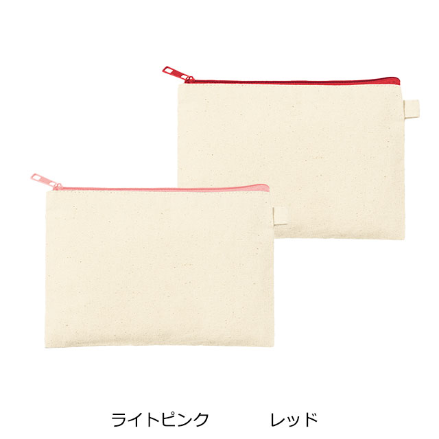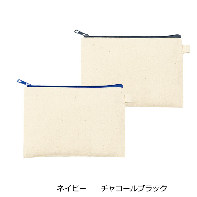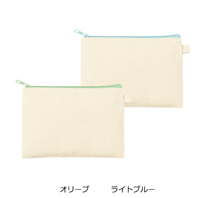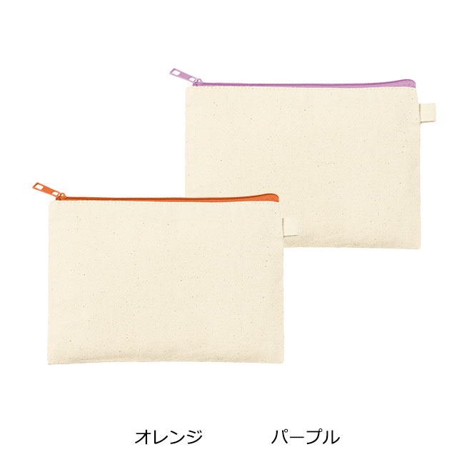 生成りのコットン素材を使用した、シンプルで使いやすいフラットポーチです。