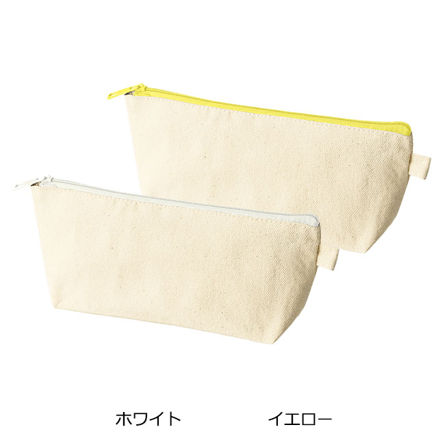 生成りのコットン素材を使用した、横長のマチ付きポーチです。