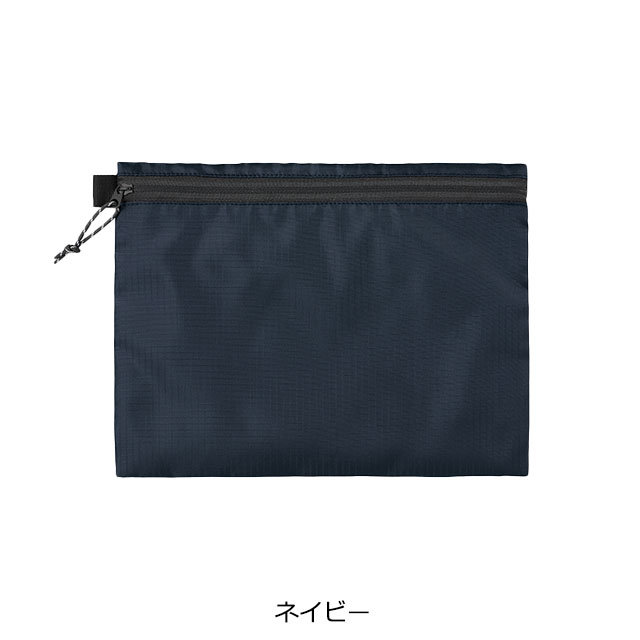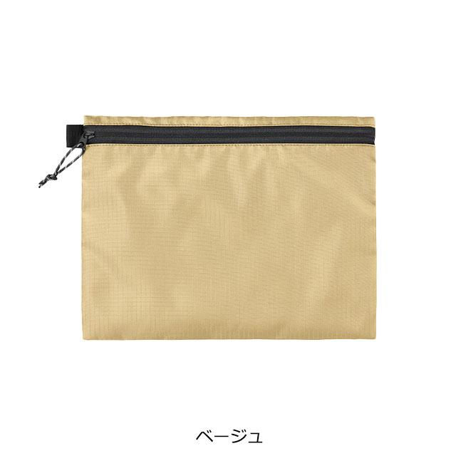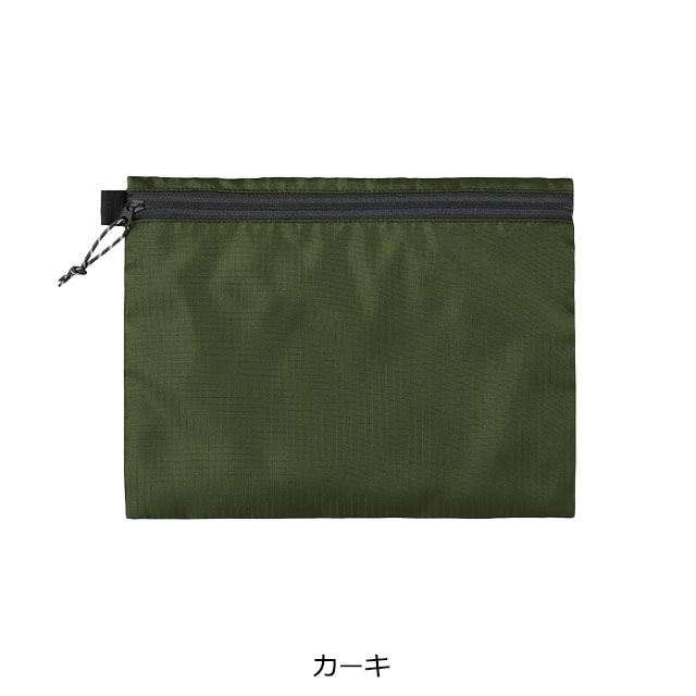 アウトドアシーンでも使われる丈夫なリップストップ生地を使用した、フラットタイプのマチなしポーチです。軽量ながら引き裂きに強く、日常使いからアクティブなシーンまで幅広く活躍します。すっきりとしたフラット形状なので、バッグの中でもかさばりにくくスマートに持ち運び可能。デイリーユースはもちろん、旅行やアウトドアのサブ収納としても便利です。サイドにはループ付いており、キーホルダーやカラビナを取り付けて持ち運ぶことが可能。バッグやベルトループに掛けるなど、使い方の幅が広がります。ファスナーには柄紐の引手を採用。開閉しやすく、実用性とデザイン性を兼ね備えたアクセントになっています。用途に合わせて選べる3サイズ展開。こちらは、余裕のある大きめサイズで、旅行時の仕分けや着替え用のサブポーチとしても便利です。
