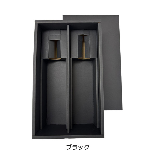 シャンパンとワインの両方に対応した身蓋箱です。付属のパットを使用することで、隙間を埋めることができ、収納した際のガタつきを抑えて安定します。フタ・身・サイズ調整パッドすべてカラーをブラックで統一しているため、シンプルかつ洗練されたデザインで、高級感あふれるパッケージになっております。贈答用や記念品におすすめ。