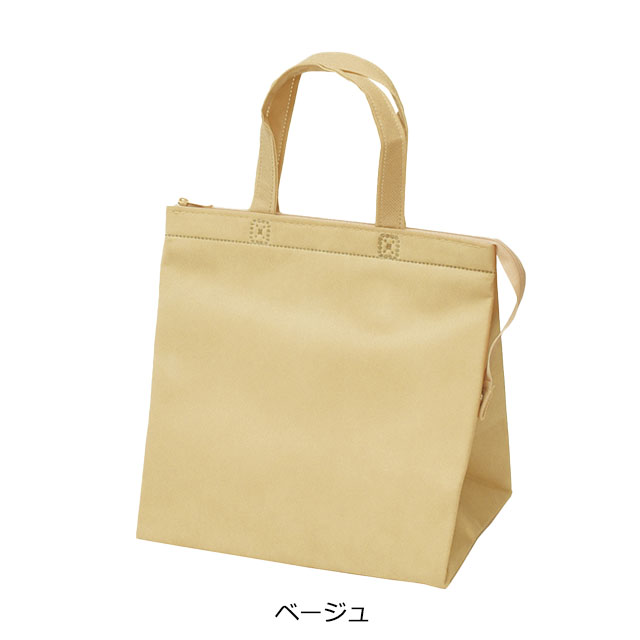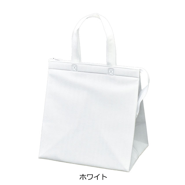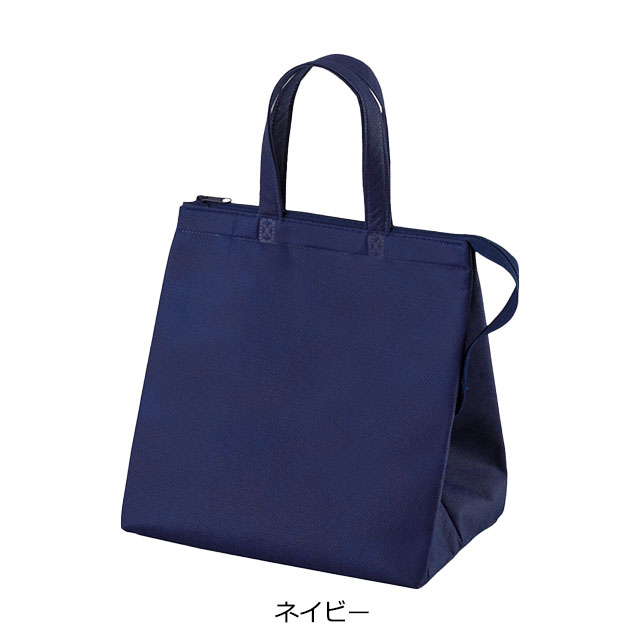 三角のシルエットが可愛らしい保冷バッグです。開口部はファスナー付きで大きく開くので出し入れもしやすい仕様です。サイドには金属ボタンが付いており、中身の大きさによってサイズを調整することが可能です。使いやすいベーシックタイプで、飲食店様のテイクアウト用バッグとしても人気のアイテムです。全3サイズからお選びいただけます。