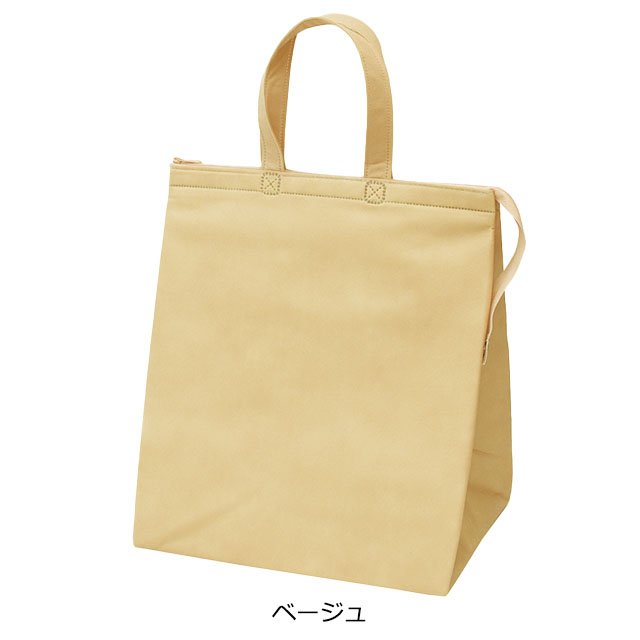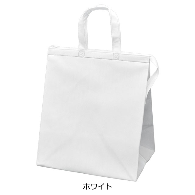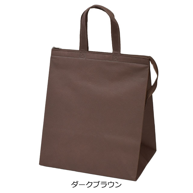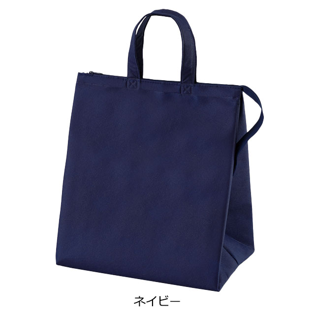 三角のシルエットが可愛らしい保冷バッグです。開口部はファスナー付きで大きく開くので出し入れもしやすい仕様です。サイドには金属ボタンが付いており、中身の大きさによってサイズを調整することが可能です。使いやすいベーシックタイプで、飲食店様のテイクアウト用バッグとしても人気のアイテムです。全3サイズからお選びいただけます。