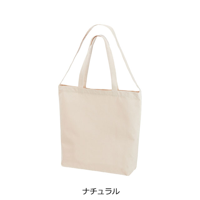 8.3オンスのやや厚みのあるコットン生地を使用した、船底型バッグです。容量は約16リットルの大きめサイズ。衣類や雑貨、まとめ買いした荷物もしっかり収納できます。