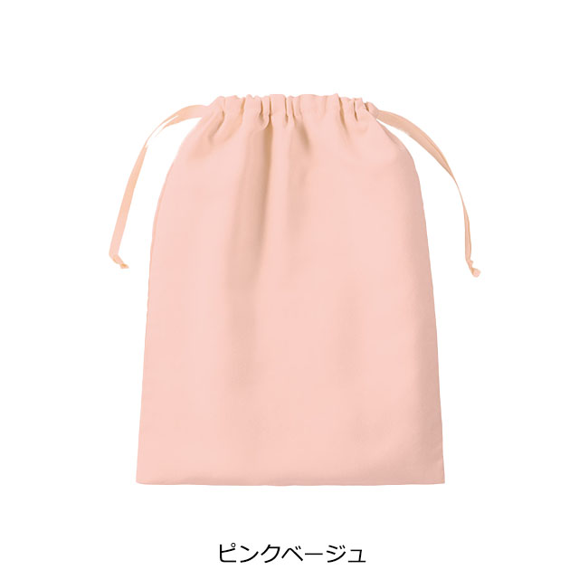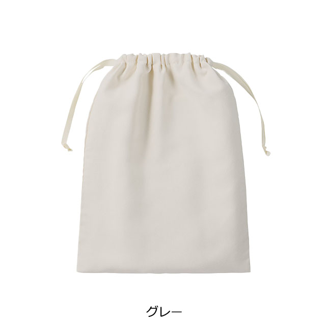 ポリエステル素材を使用した、スウェード調の巾着です。やわらかく上品な質感で、ギフトシーンにもなじむ落ち着いた印象が特長。巾着紐には長めのリボンを採用しているので、使用時には巾着上部でリボン結びができる仕様です。用途に合わせて選べる3サイズ展開で、こちらはTシャツが入る大きめサイズなので旅行時の仕分けに便利。化粧品やアクセサリーなどのギフトバッグとしてはもちろん、アパレルノベルティや販促用途にも取り入れやすいアイテムです。